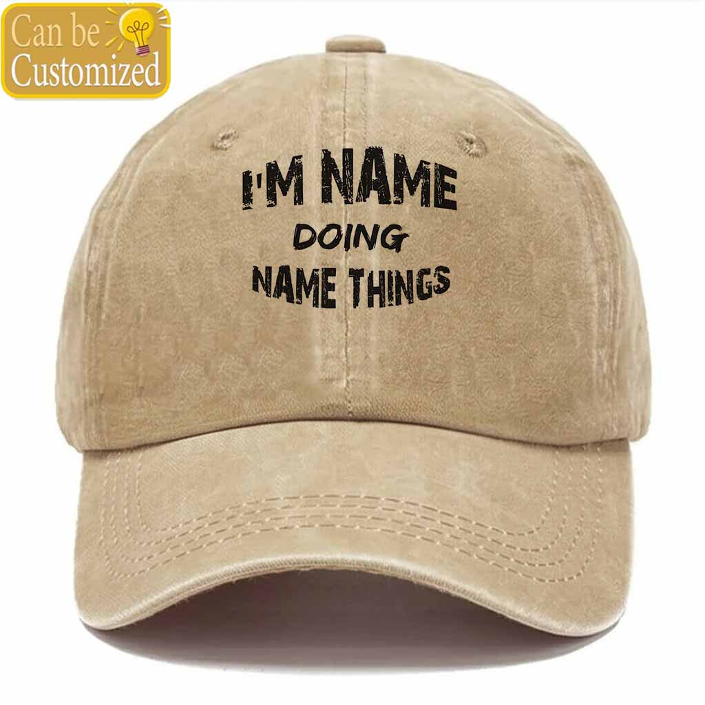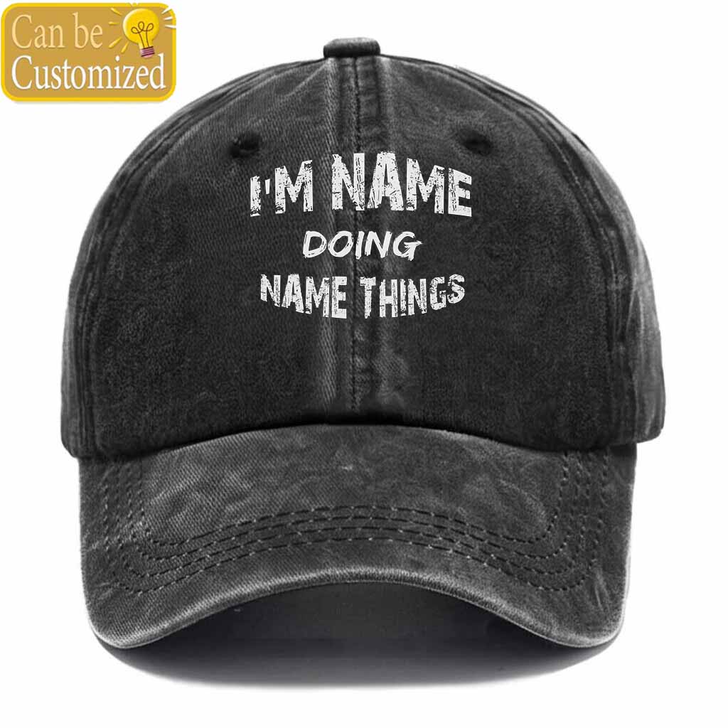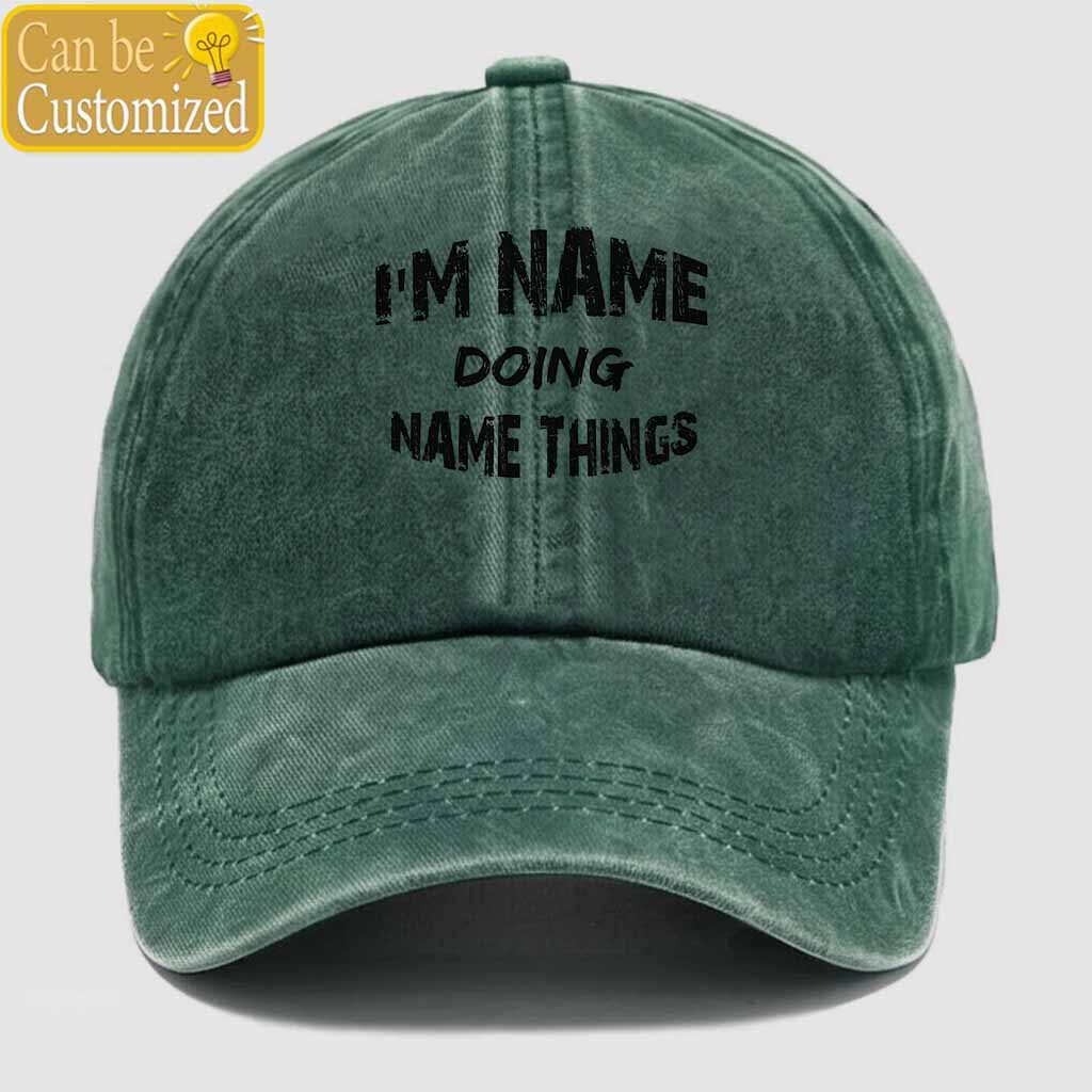 Personalized Name Doing Things Washed Baseball Cap